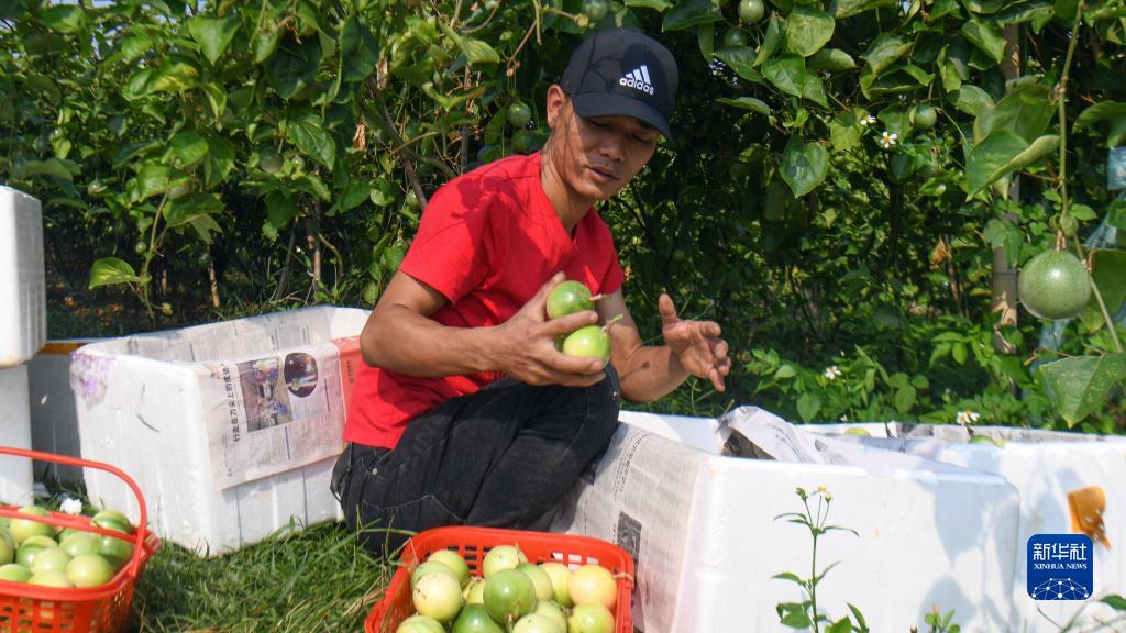 10月28日,在钦州市钦南区犀牛脚镇西寮村果园,一位村民将黄金百香果分类装箱。新华社记者 张爱林 摄 近日,广西钦州市钦南区近3000亩黄金百香果进入收获季节,果农们抓紧抢收外销。钦南区黄金百香果今年产量预计超5000吨。