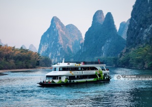 10月3日,桂林阳朔凭借奇绝山水与浓郁民俗迎来旅游小高峰。图为漓江上焕然一新的“桂花号”主题游船。桂林市国资委供图(广西云-广西日报)