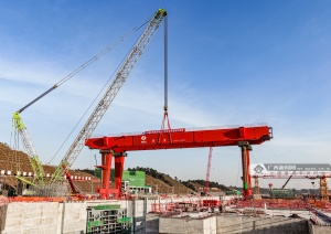 11月25日,平陆运河青年枢纽船闸首台门机设备完成吊装。作为船闸运行维护系统的关键设备,门机承担着船闸的闸阀门、系船柱、启闭机等设备的检修及应急抢险等多项核心任务。平陆运河集团供图