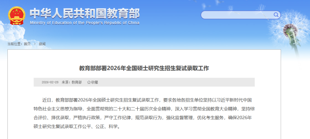 教育部部署2026年全国硕士研究生招生复试录取工作 |