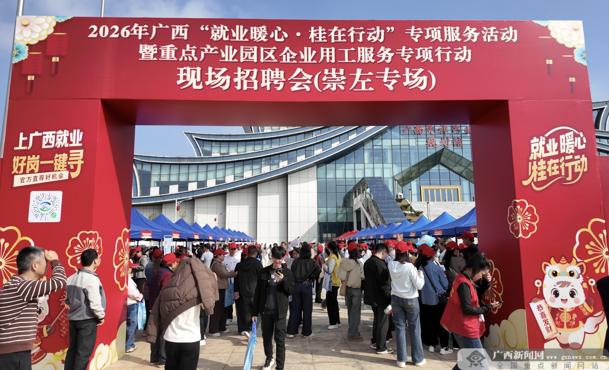 “请问这个操作工岗位需要什么条件?月薪能达到多少?”2月27日,凭祥产业园内人潮涌动,2026年广西“就业暖心·桂在行动”专项服务活动暨区内重点产业园区企业用工服务专项行动现场招聘会(崇左专场)正式启动,以精准服务搭建供需桥梁,助力重点产业园区企业稳岗扩产。 视频摄制:记者 李慧子 活动现场,涵盖食品加工、新能源、木材加工、电子材料等多个行业领域的多家企业集中设展招聘,提供普工、操作工、技术岗等570多个就业岗位。一个个招聘展位前挤满了前来咨询的求职者,有的认真翻阅岗位信息手册,有的与企业招聘人员面对面交流,仔细询问工作内容、作息时间、社保福利等细节。企业招聘人员则耐心答疑,主动介绍企业发展现状、岗位优势,让求职者直观了解岗位特点。主办方还为求职代表现场发放政策岗位“暖心包”,内含就业扶持政策、岗位信息指南等实用资料。