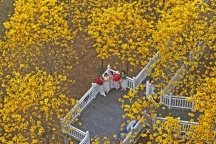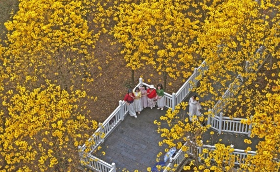 7000株黄花风铃木盛放!南宁市青秀山引客来